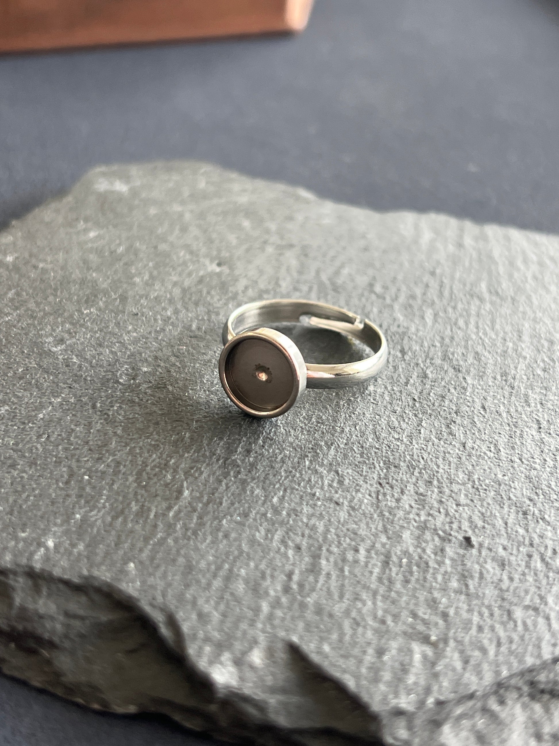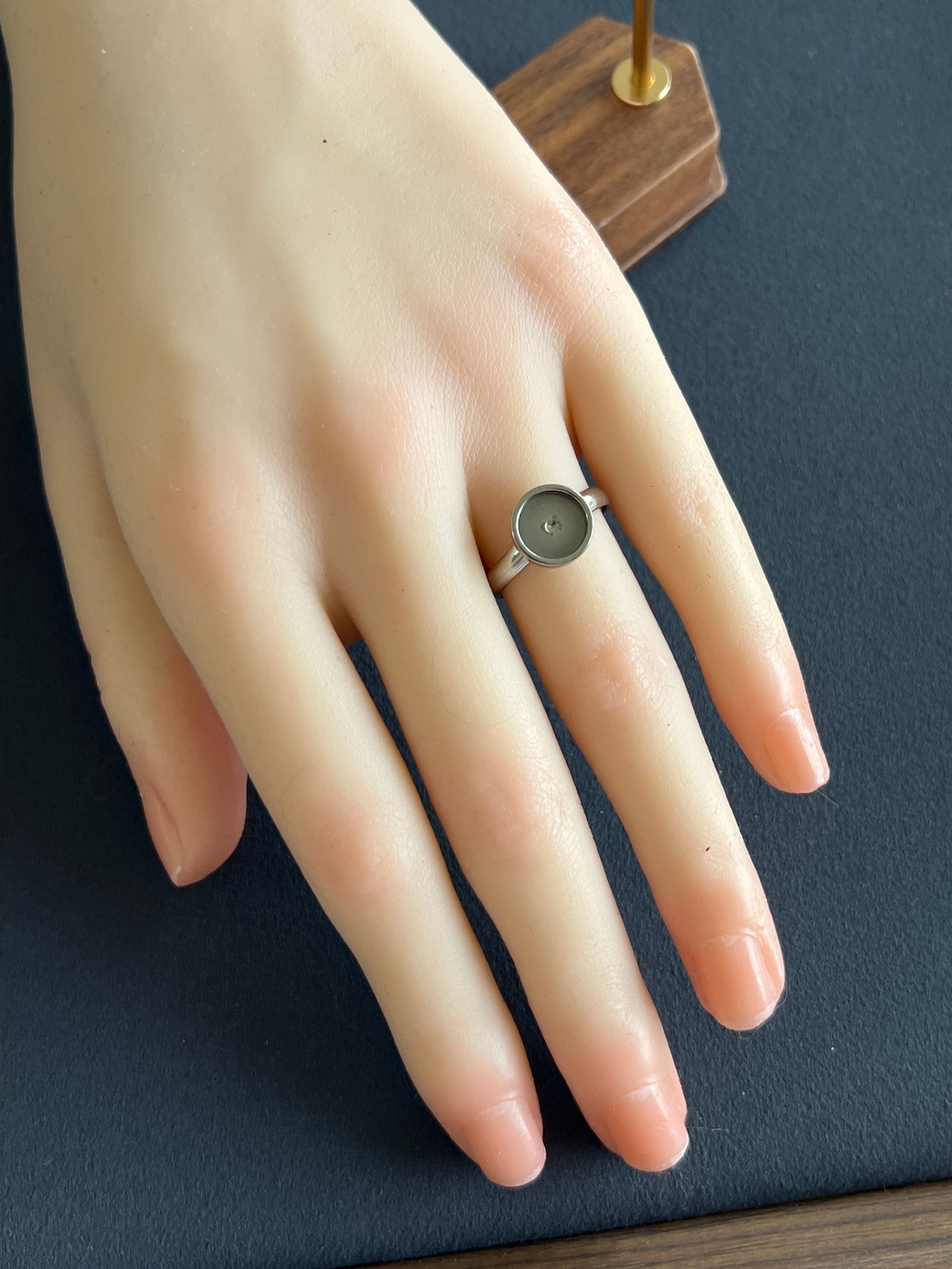 5個 リング空枠 ステンレススチール 皿8mm 約13号 調整可